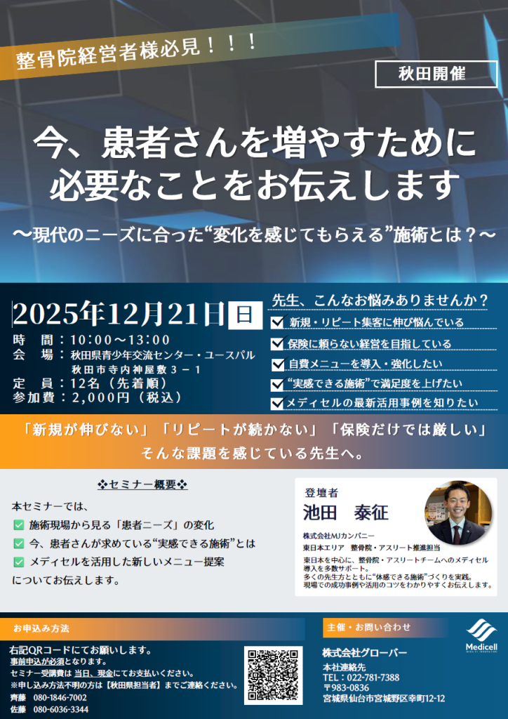 今、患者さんを増やすために必要なことをお伝えします[秋田]